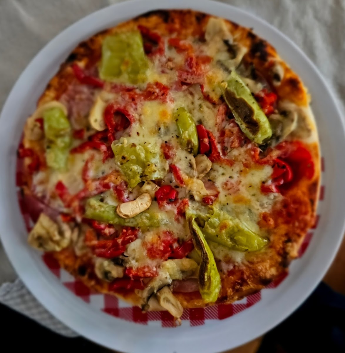 Die Pizza ist superlecker, darum holen wir ja auch regelmäßig und nirgendwo anders unsere Pizza Außerdem kommen uns die 10% Ersparnis für's selber holen natürlich entgegen..spielt bei 700m keine Rolle ! 26cm ist eine gute Größe für Pizza aber wenn es 30cm auch noch geben würde wäre es perfekt